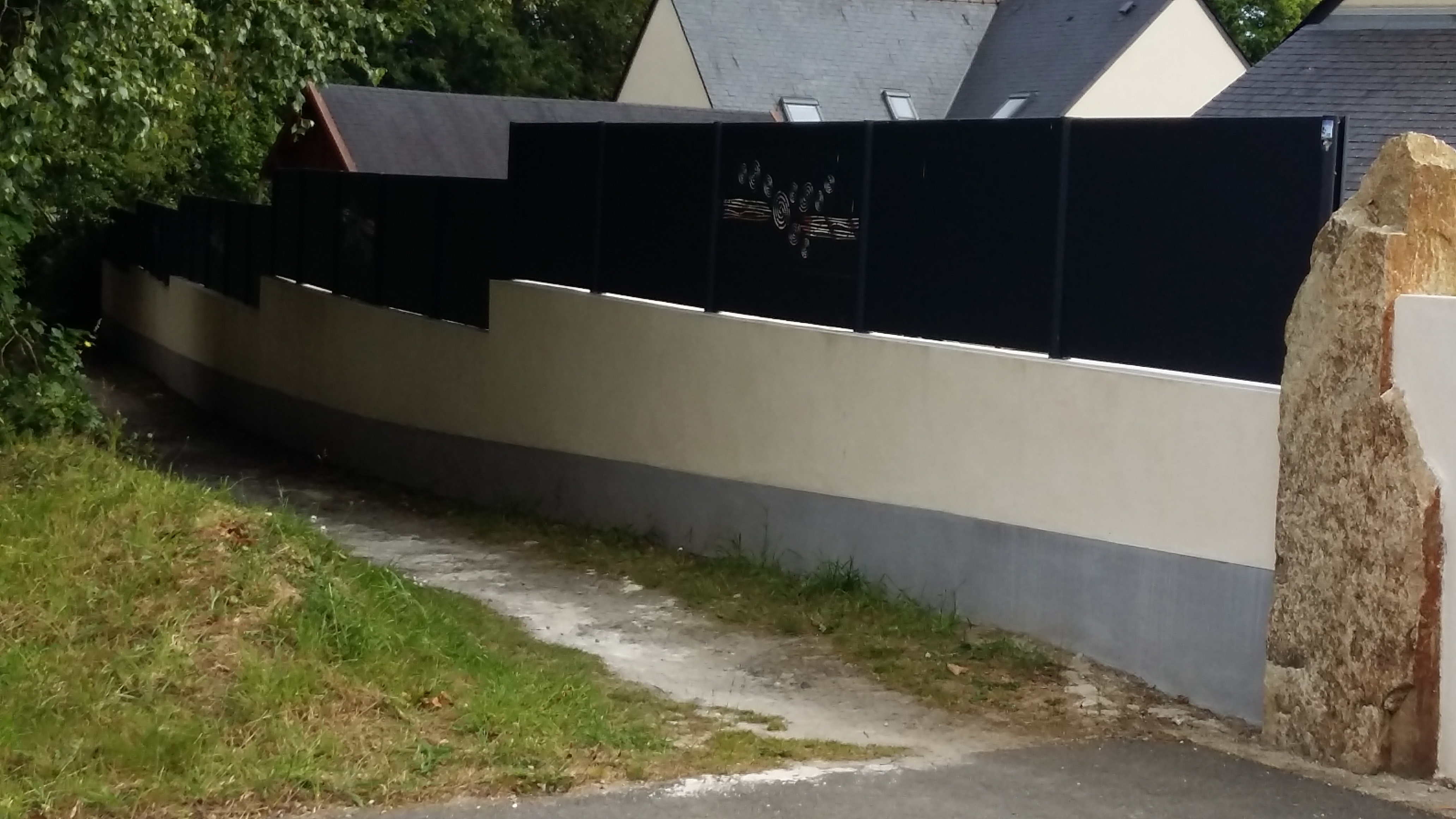 réalisation de mur avec enduit bicolore et palissade finition découpe laser
